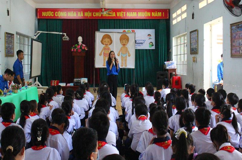 Đoàn viên thanh niên tuyên tuyền kỹ năng cần thiết trong cuộc sống như kỹ năng phòng, chống đuối nước cho học sinh tiểu học