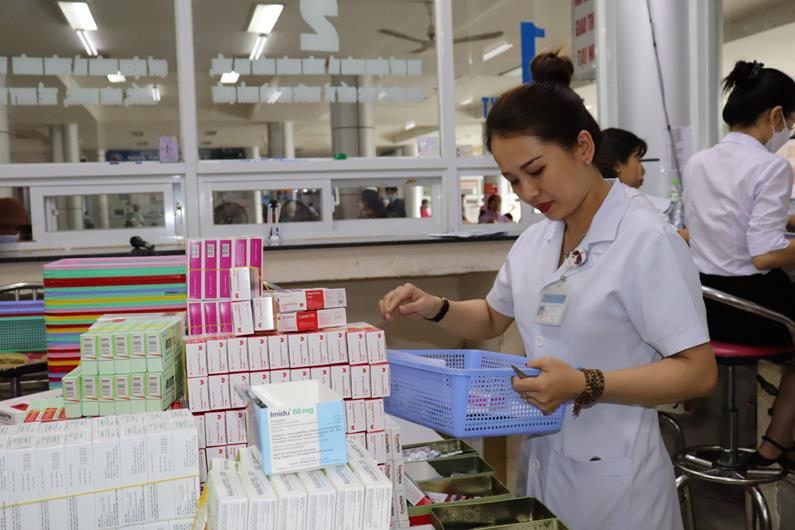 Nhân viên y tế soạn thuốc BHYT để cấp phát cho bệnh nhân