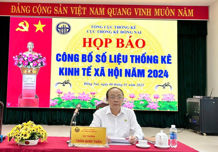 Ông Trần Quốc Tuấn - Cục trưởng Cục Thống kê Đồng Nai chủ trì buổi họp báo.