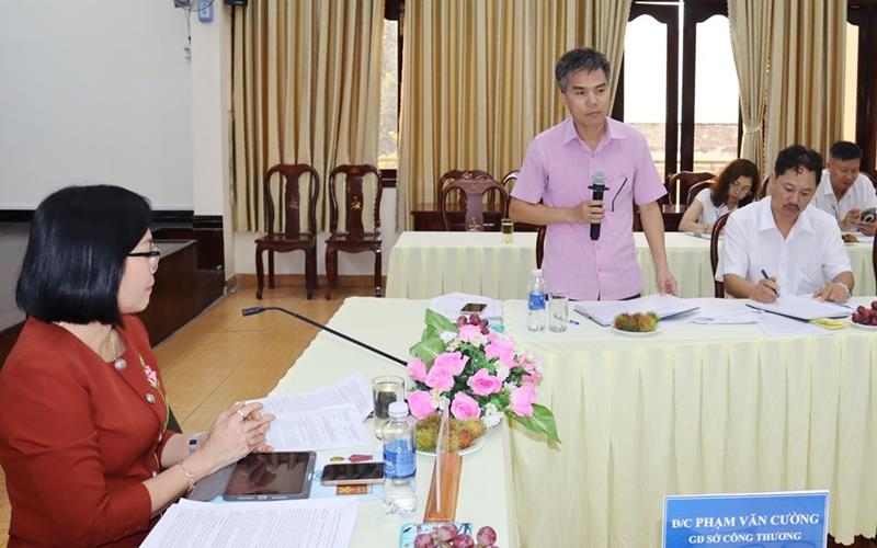 Giám đốc Sở Công thương Phạm Văn Cường ghi nhận kết quả phát triển ngành công thương của huyện trong năm 2023 và 5 tháng năm 2024. Lãnh đạo Sở Công thương cũng giải đáp một số kiến nghị của huyện. Về hồ sơ đề nghị đầu tư chợ nông thôn, Nghị quyết số 08/2022/NQ-HĐND ngày 8-7-2022 của HĐND tỉnh đã quy định đầy đủ quy trình, thành phần hồ sơ, mức kinh phí hỗ trợ, huyện nghiên cứu để triển khai thực hiện.
