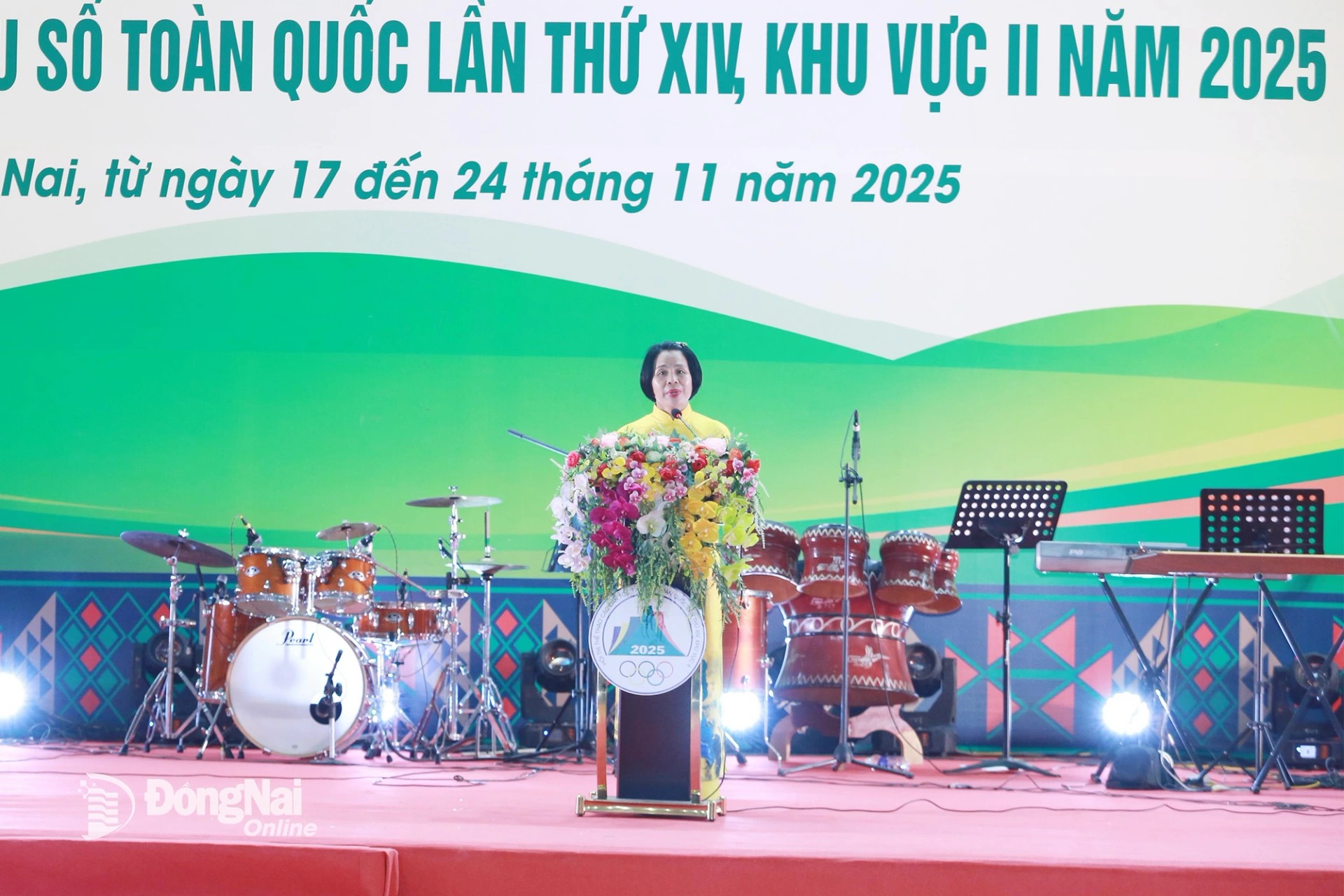 Phát biểu khai mạc, Tỉnh ủy viên, Giám đốc Sở Văn hóa, Thể thao và Du lịch Đồng Nai Lê Thị Ngọc Loan cho biết: Đồng Nai vinh dự được Cục Thể dục thể thao Việt Nam chọn là đơn vị đăng cai tổ chức Hội thi thể thao các dân tộc thiểu số toàn quốc lần thứ XIV, khu vực II năm 2025. Hội thi là hoạt động định kỳ của Cục Thể dục thể thao Việt Nam với các tỉnh, thành trong các khu vực. Đây là hoạt động có ý nghĩa chính trị - xã hội sâu sắc, thể hiện sự quan tâm của Đảng và Nhà nước với phong trào thể thao quần chúng.
