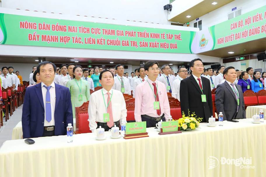 Chào cờ khai mạc phiên trù bị Đại hội đại biểu Hội Nông dân tỉnh Đồng Nai lần thứ I, nhiệm kỳ 2025-2030. Ảnh: Huy Anh