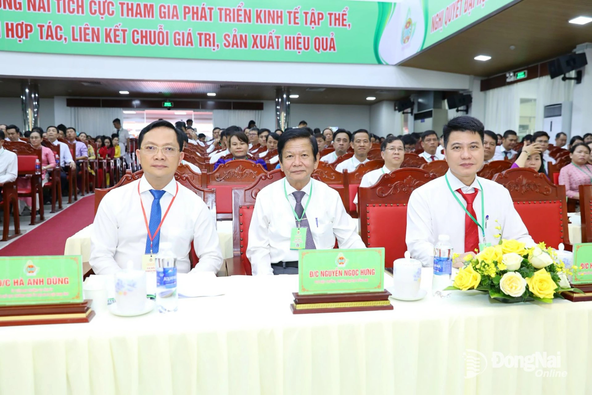 Đoàn Chủ tịch Đại hội đại biểu Hội Nông dân tỉnh Đồng Nai lần thứ I, nhiệm kỳ 2025-2030 điều hành đại hội. Ảnh: Huy Anh