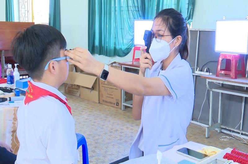 Nhân viên y tế khám mắt cho học sinh Trường THCS Võ Trường Toản (TP.Biên Hòa) trong khuôn khổ dự án Mắt sáng cho cuộc đời