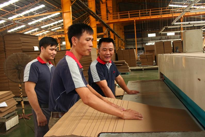 Công đoàn cơ sở Công ty TNHH Giấy Yuen Foong Yu Đồng Nai (H.Long Thành) thăm hỏi công nhân làm việc tại xưởng sản xuất