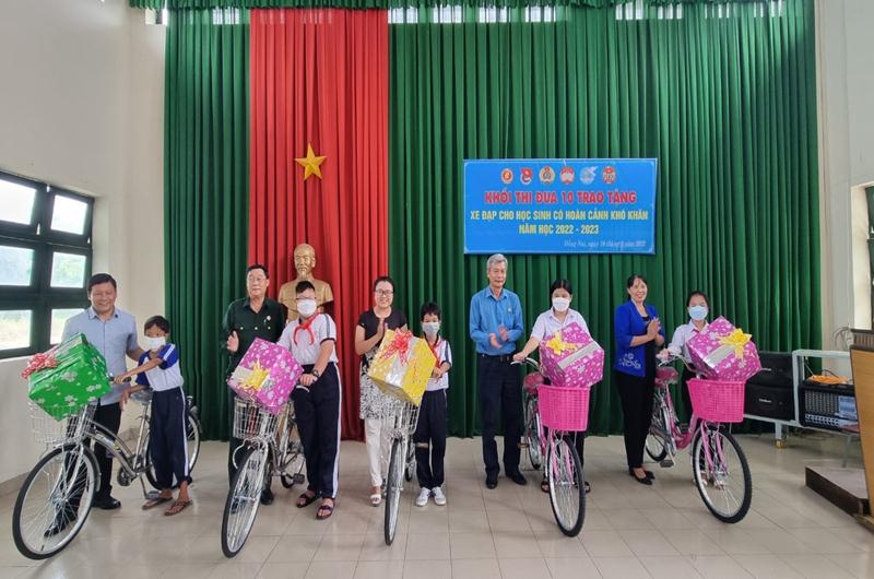 Tại buổi lễ, Khối thi đua số 10 đã trao 15 phần quà cho 15 em học sinh khó khăn, mỗi phần gồm 1 chiếc xe đạp và quà trị giá trên 2,4 triệu đồng/ học sinh. Tổng số tiền quà hơn 36 triệu đồng. Trong số những học sinh được nhận quà, nhiều em có bố hoặc mẹ bị bệnh, bố bị tai nạn giao thông hoặc bố mẹ ly hôn, không có việc làm ổn định…