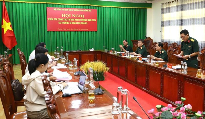 (CTT-Đồng Nai) - Đoàn kiểm tra công tác Thi đua khen thưởng (TĐKT) của tỉnh do Phó Giám đốc Sở Nội vụ Phạm Minh Phước, Phó Chủ tịch Hội đồng TĐKT tỉnh, Trưởng đoàn vừa có buổi kiểm tra công tác TĐKT tại Trường Sĩ quan Lục quân (SQLQ) 2 (Đại học Nguyễn Huệ) đóng tại phường Tam Phước, thành phố Biên Hòa.