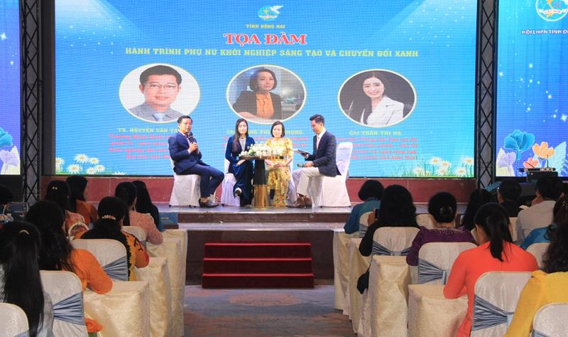 Bên cạnh đó, cán bộ, hội viên, phụ nữ tham dự ngày hội còn được tham gia Tọa đàm hành trình phụ nữ khởi nghiệp sáng tạo và chuyển đổi xanh. Đại biểu khách mời là chuyên gia trong lĩnh vực khởi nghiệp, cá nhân phụ nữ khởi nghiệp tham gia tọa đàm đã chia sẻ làm rõ khái niệm chuyển đổi xanh; những thách thức mà phụ nữ gặp phải khi khởi nghiệp và phát triển các mô hình kinh tế xanh; hành trình khởi nghiệp, quảng bá, giới thiệu sản phẩm OCOP…