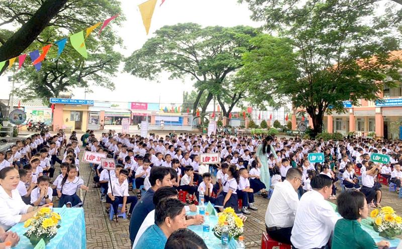 Các đại biểu và học sinh Trường tiểu học Quang Trung dự lễ khai giảng