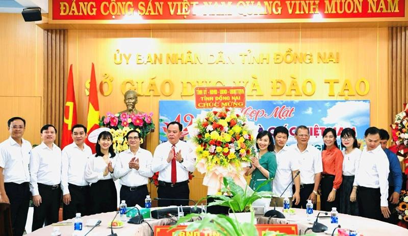 (CTT-Đồng Nai) - Sáng 20-11, Phó Bí thư, Chủ tịch UBND tỉnh Võ Tấn Đức đã đến thăm, chúc mừng cán bộ, công chức, viên chức Sở Giáo dục và Đào tạo nhân kỷ niệm 42 năm Ngày Nhà giáo Việt Nam (20-11-1982 - 20-11-2024). Cùng dự có Phó Chủ tịch UBND tỉnh Nguyễn Sơn Hùng và lãnh đạo Văn phòng UBND tỉnh.