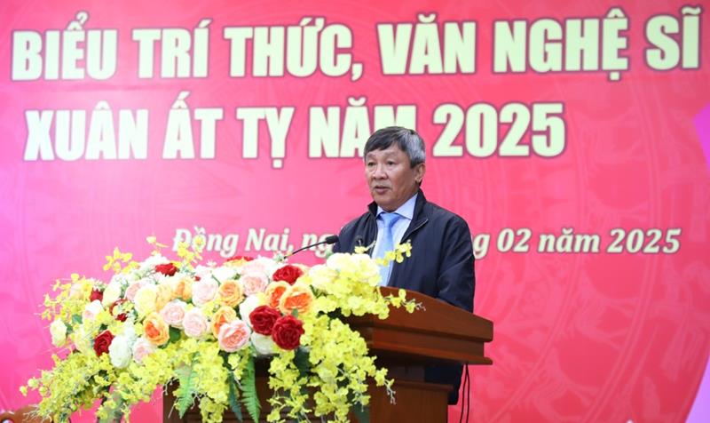 Phó Bí thư Thường trực Tỉnh ủy Hồ Thanh Sơn mong muốn đội ngũ các nhà khoa học, văn nghệ sĩ, trí thức tiếp tục song hành với đời sống, song hành với các mục tiêu phát triển kinh tế - xã hội, quốc phòng - an ninh, chính sách an sinh xã hội của tỉnh năm 2025 để xây dựng Đồng Nai trở thành tỉnh công nghiệp, hiện đại; lập thành tích chào mừng Đại hội đại biểu Đảng bộ tỉnh lần thứ XII, nhiệm kỳ 2025-2030.
