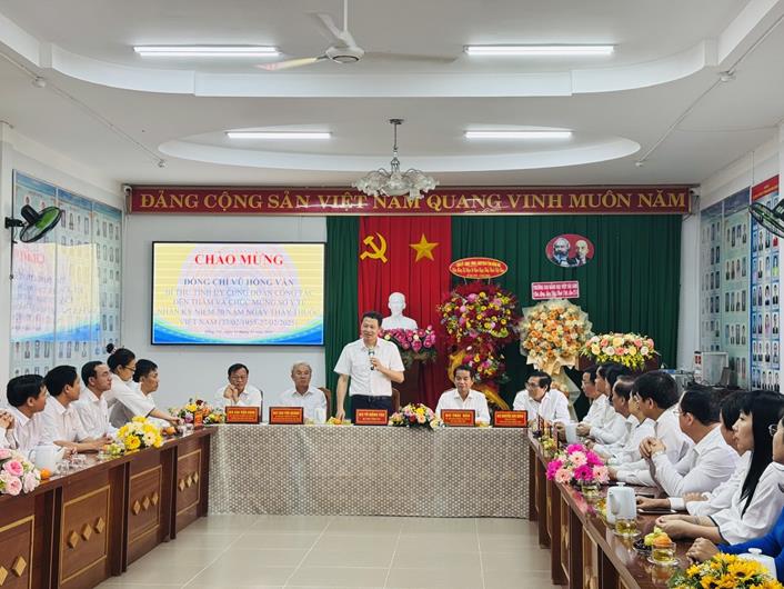 (CTT-Đồng Nai) - Chiều 24-2, đoàn công tác của Tỉnh ủy, HĐND, UBND, Ủy ban MTTQ Việt Nam tỉnh do các đồng chí: Vũ Hồng Văn, Bí thư Tỉnh ủy; Thái Bảo, Chủ tịch HĐND tỉnh; Cao Văn Quang, Chủ tịch Ủy ban MTTQ Việt Nam tỉnh; Cao Tiến Dũng, Trưởng Ban Dân vận Tỉnh ủy; Nguyễn Sơn Hùng, Phó Chủ tịch UBND tỉnh đã đến tặng hoa, chúc mừng cán bộ, nhân viên Sở Y tế nhân kỷ niệm 70 năm Ngày Thầy thuốc Việt Nam (27-2-1955 – 27-2-2025).
