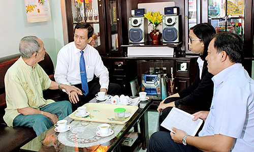 Trưởng ban Tổ chức Tỉnh ủy Phạm Văn Ru thăm hỏi, tặng quà ông Nguyễn Cần, cán bộ tiền khởi nghĩa.