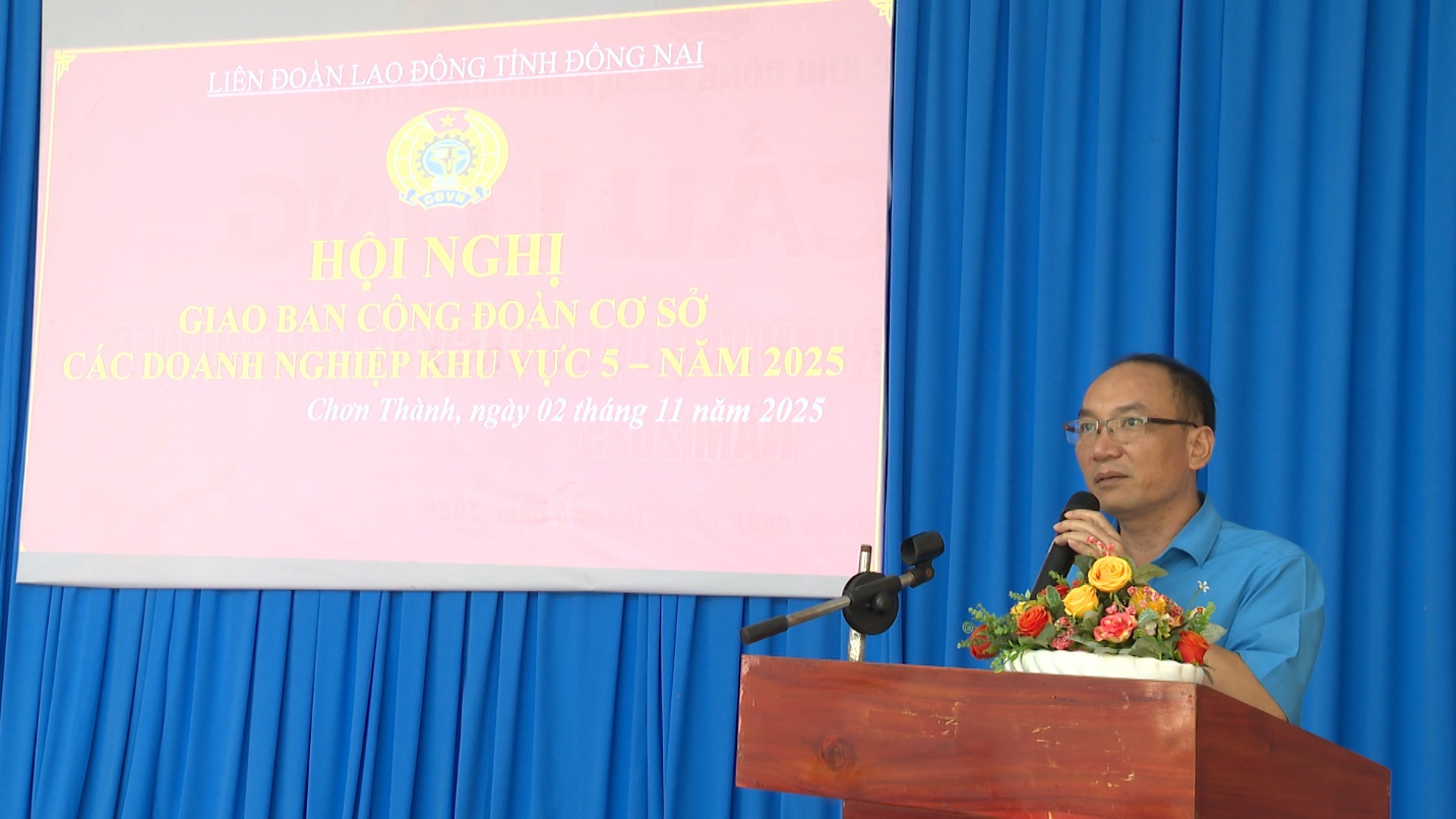 Hiện nay tổng số lao động thuộc phạm vi Khu vực 5 (bao gồm có các khu công nghiệp trên địa bàn Bình Phước (cũ): có 187 CĐCS, khoảng 79 ngàn đoàn viên/81 ngàn lao động. Thời gian vừa qua tổ chức Công đoàn đã thực hiện tốt công tác chăm lo, đại diện bảo vệ quyền lợi người lao động. Phát động phong trào “Lao động giỏi, Lao động sáng tạo”, “Xanh – Sạch – Đẹp, An toàn vệ sinh lao động”, “Giỏi việc nước -Đảm việc nhà”. Tại hội nghị lãnh đạo LĐLĐ tỉnh Đồng Nai, cũng đã triển khai các nội dung: kế hoạch tổ chức Đại hội, hội nghị CĐCS nhiệm kỳ 2025-2030; thương lượng, ký kết thỏa ước lao động tập thể, công tác an toàn vệ sinh lao động và mạng lưới an toàn vệ sinh viên; hướng dẫn về công tác tài chính công đoàn. Đồng thời triển khai kế hoạch tổ chức các hoạt động chăm lo Tết Nguyên đán Bính Ngọ năm 2026 cho đoàn viên, người lao động: Tết sum vầy, hội chợ thương mại, phúc lợi cho đoàn viên, chuyến xe về quê, tặng quà cho công nhân khó khăn.
