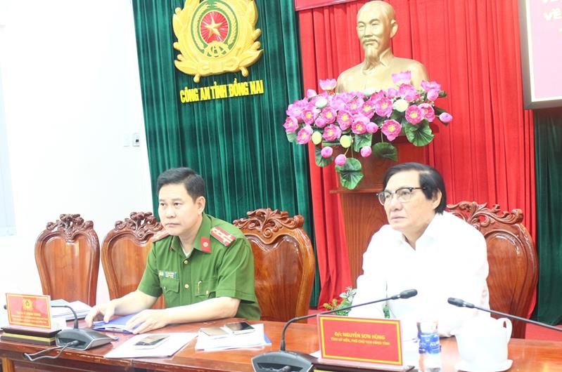 Phó Chủ tịch UBND tỉnh Nguyễn Sơn Hùng và Đại tá Lê Mạnh Hùng, Phó Giám đốc Công an tỉnh chủ trì hội nghị tại điểm cầu Đồng Nai