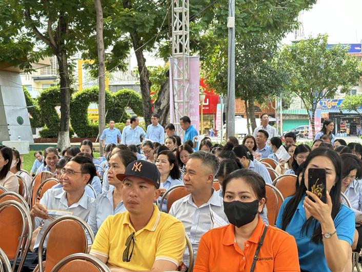 Đại diện BHXH tỉnh tuyên truyền chính sách BHXH, BHYT tại lễ mít tinh