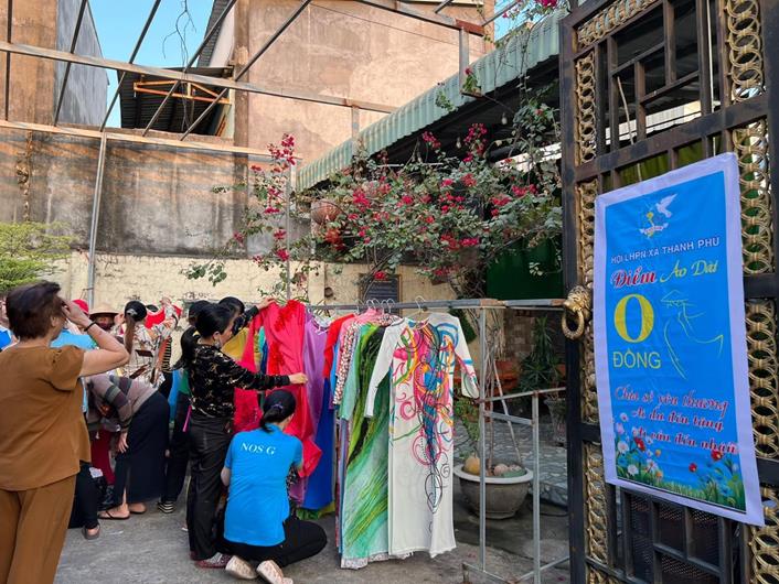 Để nhiều hội viên, phụ nữ có cơ hội nhận áo dài 0 đồng, mới đây, Hội Liên hiệp phụ nữ tỉnh đã đặt gian hàng 0 đồng tại nơi tổ chức lễ họp mặt 114 năm ngày Quốc tế phụ nữ 8-3. Chỉ trong khoảng nửa tiếng đồng hồ, 300 bộ áo dài đã đến tay hội viên, phụ nữ có hoàn cảnh khó khăn bằng cách trực tiếp hoặc gián tiếp (có người lấy giùm).