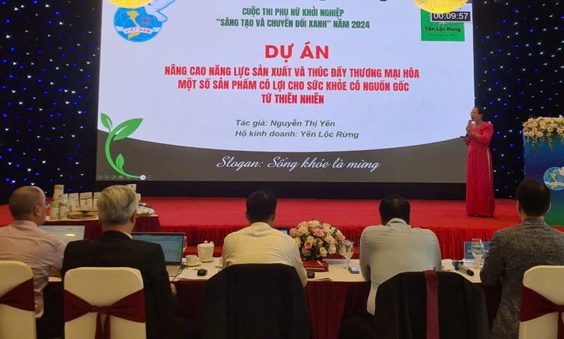 Trong đó, tỉnh Đồng Nai có một dự án được vào vòng chung kết cấp vùng khu vực miền Nam cuộc thi Phụ nữ khởi nghiệp sáng tạo và chuyển đổi xanh. Đó là dự án Nâng cao năng lực sản xuất và thúc đẩy thương mại hoá một số sản phẩm có lợi cho sức khoẻ có nguồn gốc từ thiên nhiên của thí sinh Nguyễn Thị Yến, chủ hộ kinh doanh Yến Lộc Rừng (xã Thanh Sơn, huyện Định Quán).