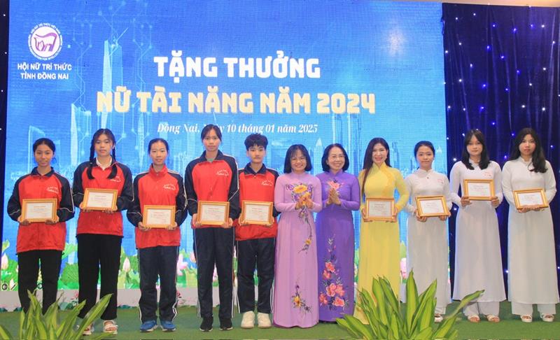 Dịp này, Hội Nữ trí thức tỉnh đã tặng thưởng Nữ tài năng cho 26 cá nhân có thành tích xuất sắc trong hoạt động, học tập, công tác trong năm 2024. Đồng thời trao bằng khen của Hội Nữ trí thức Việt Nam cho một tập thể; trao giấy khen của Liên hiệp các Hội khoa học kỹ thuật tỉnh, Hội Nữ trí thức cho 4 tập thể, 26 cá nhân có thành tích xuất sắc trong triển khai hoạt động của Hội năm 2024.