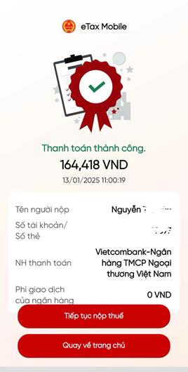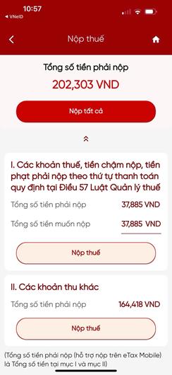 Người nộp thuế nộp tiền trên ứng dụng Etax Mobile