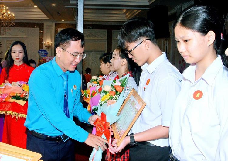 Đại diện Liên đoàn Lao động tỉnh khen thưởng con công nhân Học giỏi, sống tốt