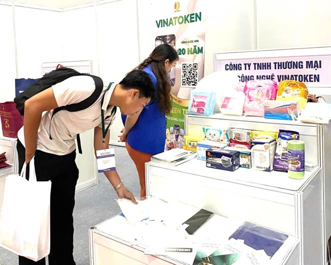 Một gian hàng vải không dệt tại triển lãm ở Thành phố Hồ Chí Minh