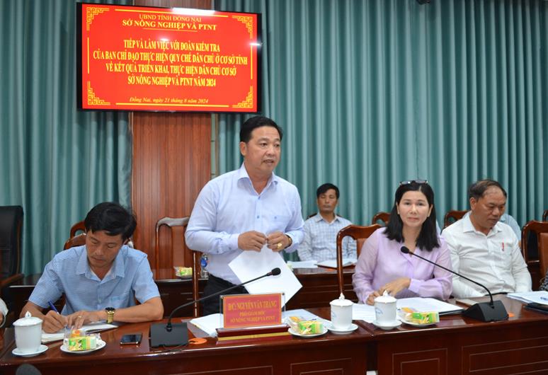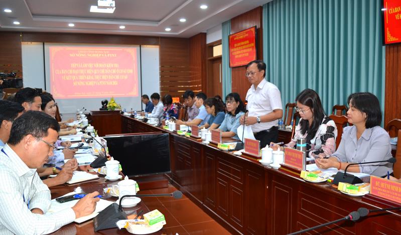 Phó Giám đốc Sở Nông nghiệp và Phát triển nông thôn, Nguyễn Văn Thắng báo cáo tại buổi làm việc.