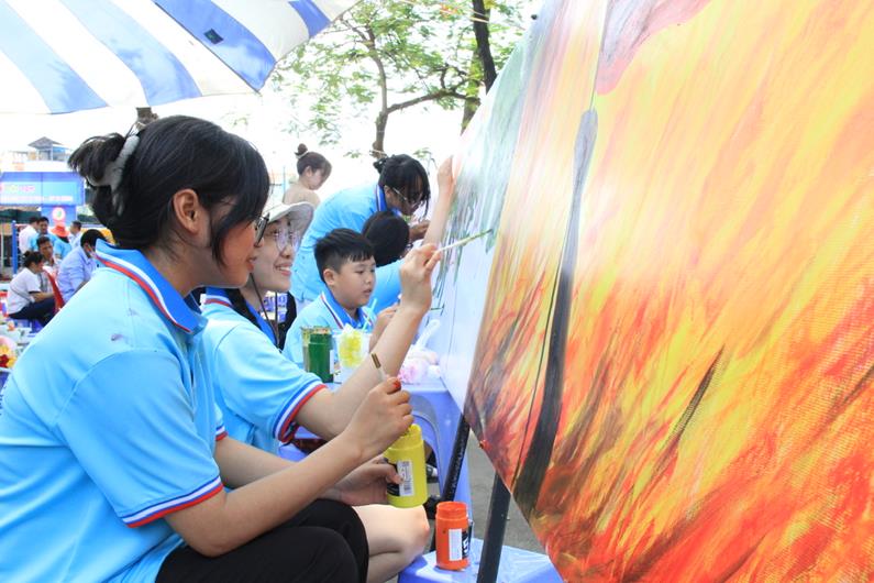Các em thiếu nhi tham gia hoạt động vẽ tranh chào mừng kỷ niệm 70 năm chiến thắng Điện Biên Phủ tại Nhà thiếu nhi Đồng Nai