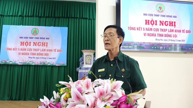 Chủ tịch Hội Cựu Thanh niên xung phong tỉnh Phan Thanh Hạ phát biểu tại hội nghị