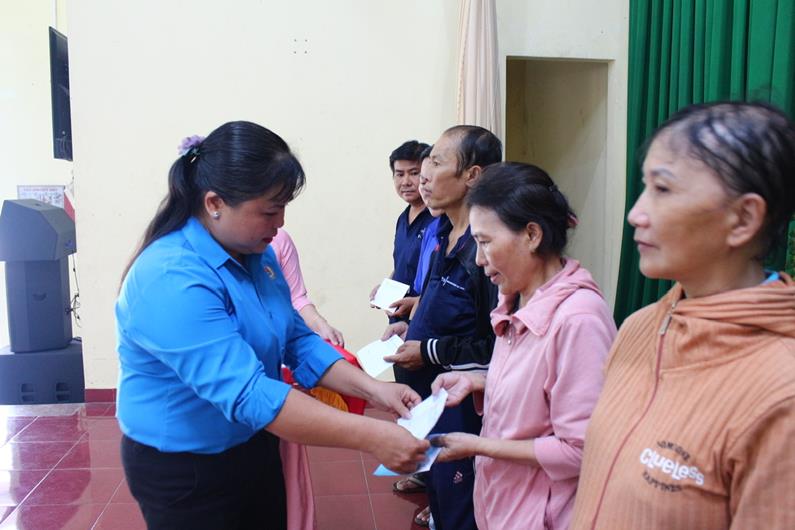 Liên đoàn Lao động H.Vĩnh Cửu tặng quà công nhân khó khăn
