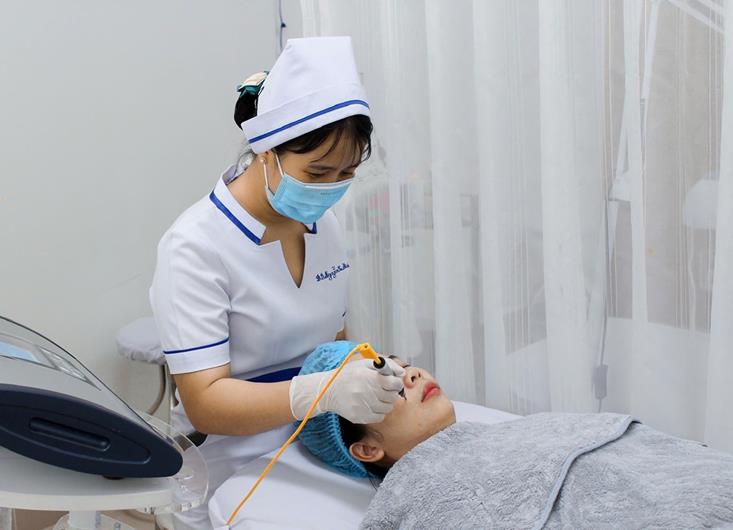 Chăm sóc da cho khách hàng nữ tại Bệnh viện Da liễu Đồng Nai.