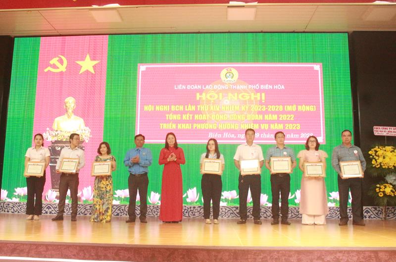 Các cá nhân, tập thể có nhiều thành tích trong hoạt động Công đoàn năm 2022 được LĐLĐ TP.Biên Hòa khen thưởng