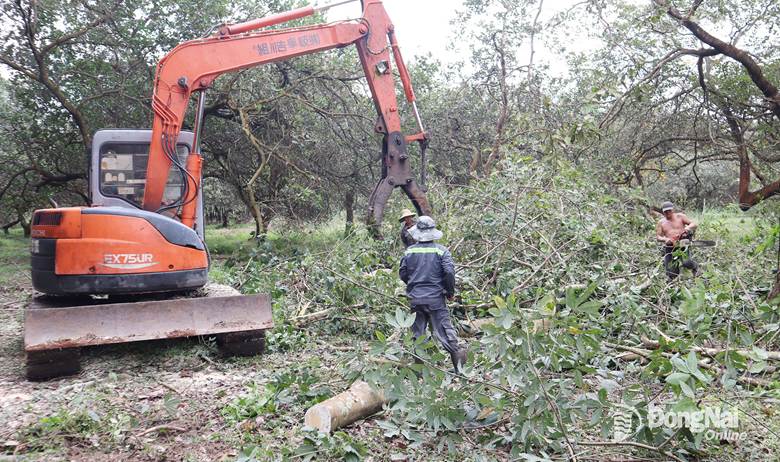 | Người dân ở phường Bình Phước, tỉnh Đồng Nai cưa cắt vườn cây bàn giao mặt bằng Dự án Đường cao tốc Bắc - Nam phía Tây, đoạn Gia Nghĩa - Chơn Thành. Ảnh: Phạm Tùng |