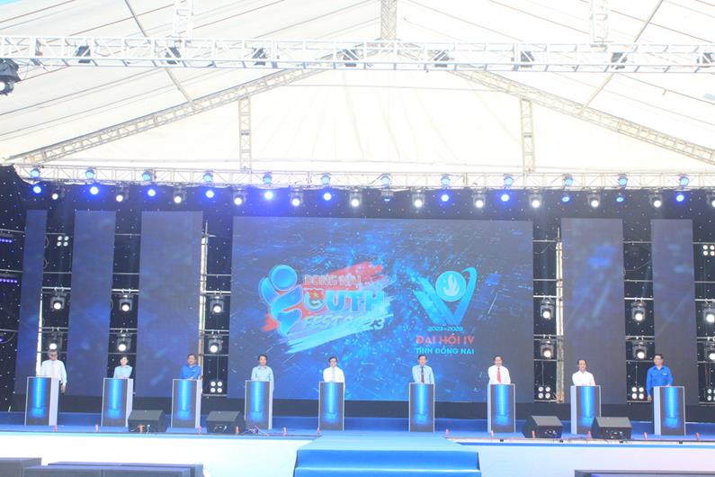 Các đại biểu thực hiện nghi thức khởi động lễ hội thanh niên Đồng Nai