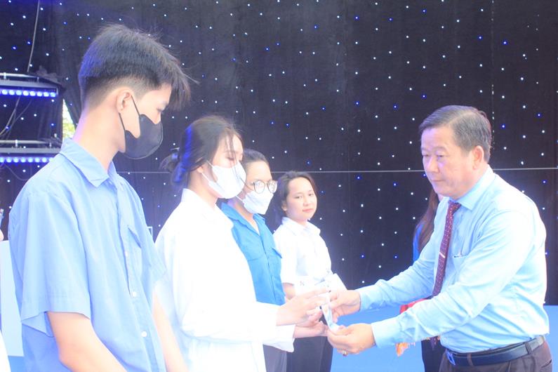 Đồng chí Đào Văn Phước, Ủy viên Ban TVTU, Trưởng Ban Tổ chức Tỉnh ủy trao học bổng cho sinh viên