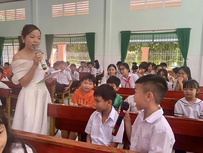 Các em học sinh trên địa bàn huyện Định Quán giao lưu, tìm hiểu về phòng, chống đuối nước và bạo lực học đường năm 2024