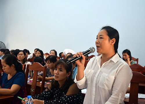 Cử tri tham gia buổi tiếp xúc cử tri chuyên đề của HĐND tỉnh với cán bộ quản lý, giáo viên, nhân viên các cơ sở giáo dục mầm non.