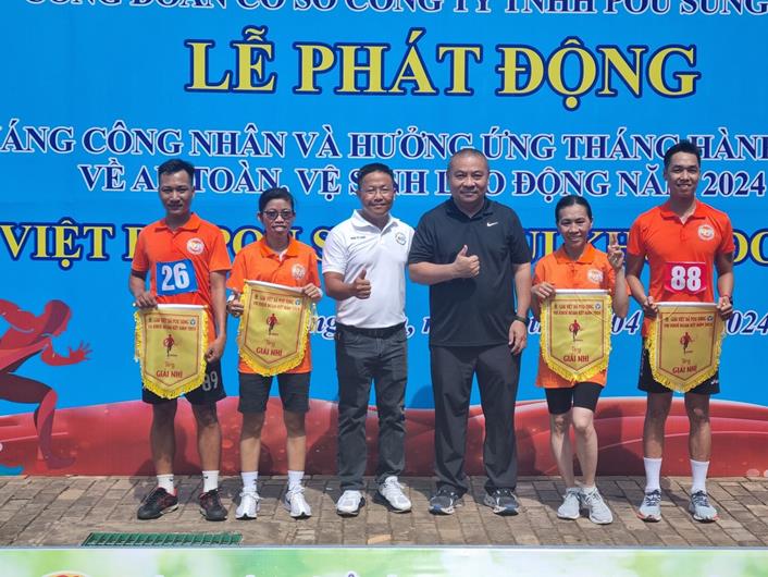 Đại diện Công ty TNHH Pousung trao giải cho công nhân tham gia giải việt dã