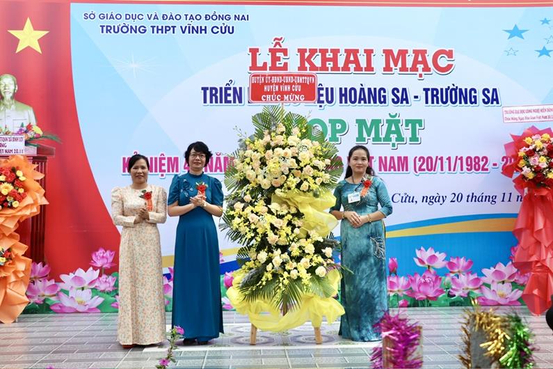 Cùng ngày, Trường THPT Vĩnh Cửu (huyện Vĩnh Cửu) đã tổ chức Khai mạc triển lãm tư liệu Hoàng Sa – Trường Sa và họp mặt nhân kỷ niệm 42 năm Ngày Nhà giáo Việt Nam. Lãnh đạo UBND huyện Vĩnh Cửu đã đến tham dự buổi lễ và cắt băng khai mạc triển lãm.