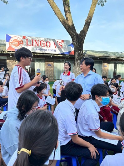 Đại diện Đoàn Luật sư tỉnh tư vấn pháp luật cho học sinh một trường học ở thành phố Long Khánh