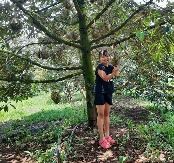 Du khách tham quan vườn sầu riêng của câu lạc bộ du lịch sinh thái vườn “Quê tôi”, xã Lộ 25, huyện Thống Nhất
