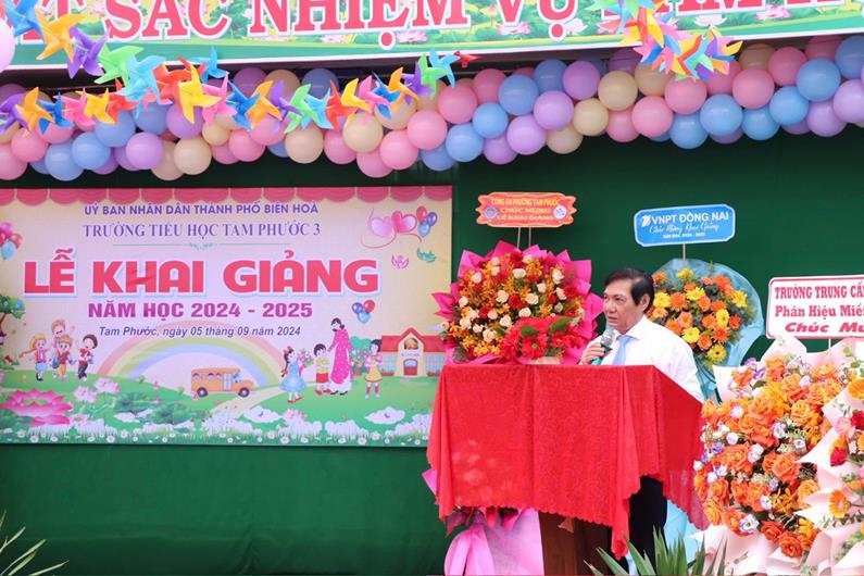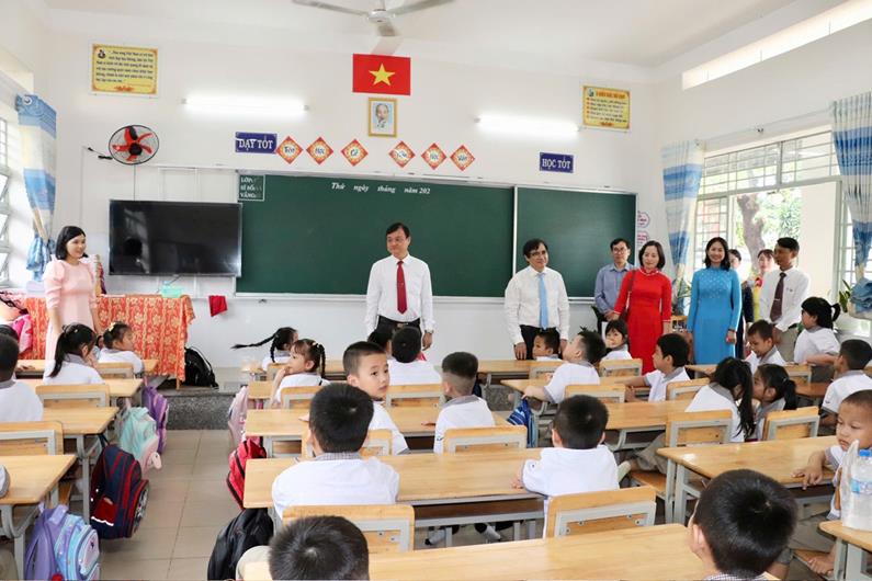 Phó Chủ tịch UBND tỉnh Nguyễn Sơn Hùng cùng lãnh đạo thành phố Biên Hòa tham quam lớp học của Trường Tiểu học Tam Phước 3 (thành phố Biên Hòa)