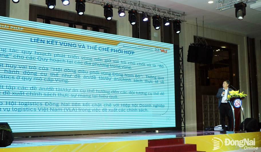 Chuyên gia của Viện Nghiên cứu và phát triển logistics (VLI) chia sẻ chuyên đề liên kết vùng để phát triển logistics Đồng Nai. Ảnh: Vương Thế