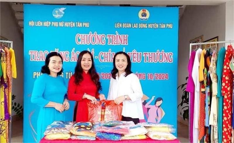 Liên đoàn Lao động huyện Tân Phú trao tặng áo dài cho nữ đoàn viên khó khăn do Công đoàn Viên chức tỉnh vận động trao tặng tháng 3-2024. Ảnh: CĐCC