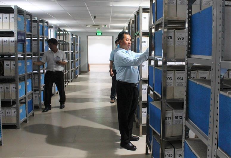 Lãnh đạo Chi cục Văn thư - Lưu trữ tỉnh kiểm tra Kho lưu trữ lịch sử tỉnh