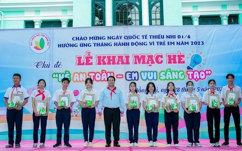 Nhà thiếu nhi tỉnh trao giải cho các em thiếu nhi đạt thành tích cao trong cuộc thi sáng tác văn học cho đội viên, thiếu nhi, học sinh tại lễ khai mạc hè