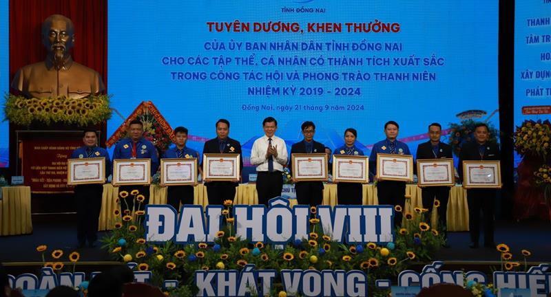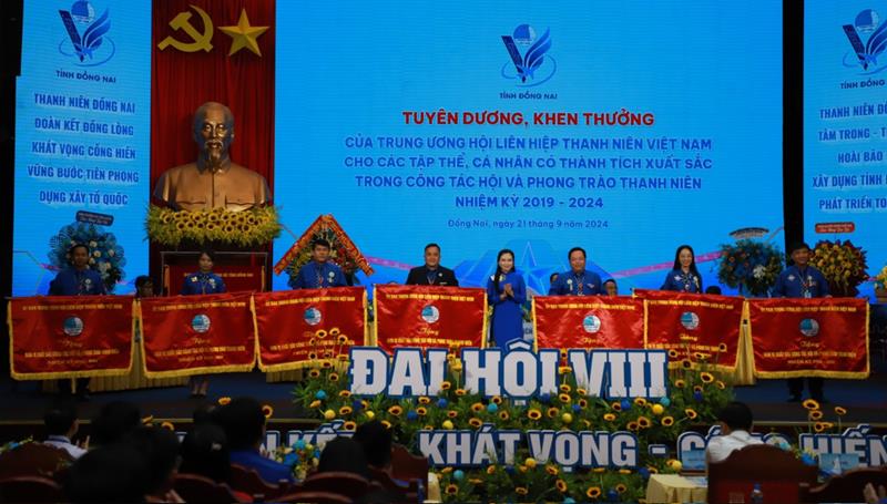 Trung ương Hội và UBND tỉnh đã trao cờ thi đua và khen thưởng các tập thể, cá nhân có thành tích xuất sắc trong công tác Hội và phong trào thanh niên tỉnh Đồng Nai, nhiệm kỳ 2019-2024. Đại hội đã công bố thư của Đại hội gửi thanh niên; thông qua Nghị quyết Đại hội đại biểu Hội LHTN Việt Nam tỉnh lần thứ VIII, nhiệm kỳ 2024-2029.