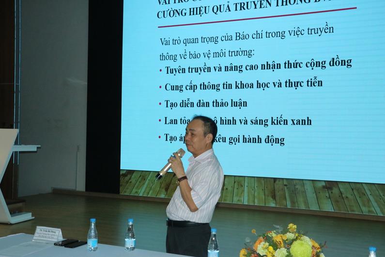 TS Trần Bá Dung, Nguyên Trưởng ban nghiệp vụ, Hội Nhà báo Việt Nam chia sẻ về vai trò của báo chí và các giải pháp tăng cường hiệu quả truyền thông bảo vệ môi trường và giải pháp phát huy hiệu quả Đề án netzero tỉnh Đồng Nai. Theo TS Trần Bá Dung, báo chí có vai trò quan trọng trong việc truyền thông về bảo vệ môi trường như tuyên truyền và nâng cao nhận thức cộng đồng; cung cấp thông tin khoa học và thực tiễn; tạo các diễn đàn thảo luận về vấn đề môi trường; lan tỏa các mô hình và sáng kiến xanh; tạo áp lực và kêu gọi hành động hướng tới những thay đổi về chính sách...