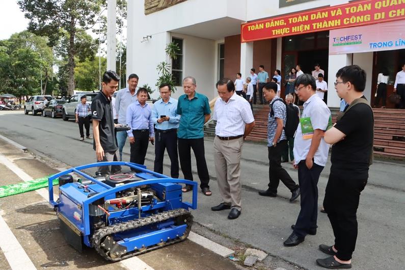 Các đại biểu tham quan sản phẩm công nghệ cao dùng trong sản xuất nông nghiệp