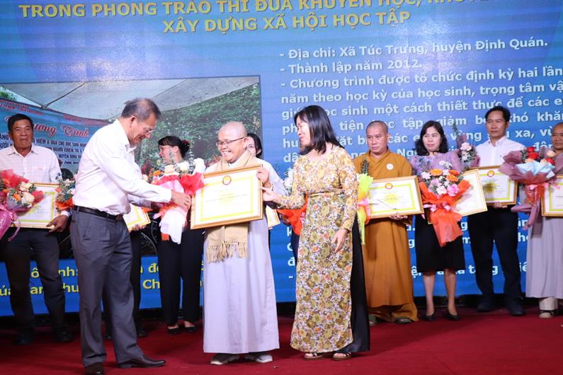 Lãnh đạo Hội khuyến học tỉnh trao Bằng khen của Trung ương Hội khuyến học Việt Nam cho các mô hình thi đua khuyến học, khuyến tài, xây dựng xã hội học tập tiêu biểu.